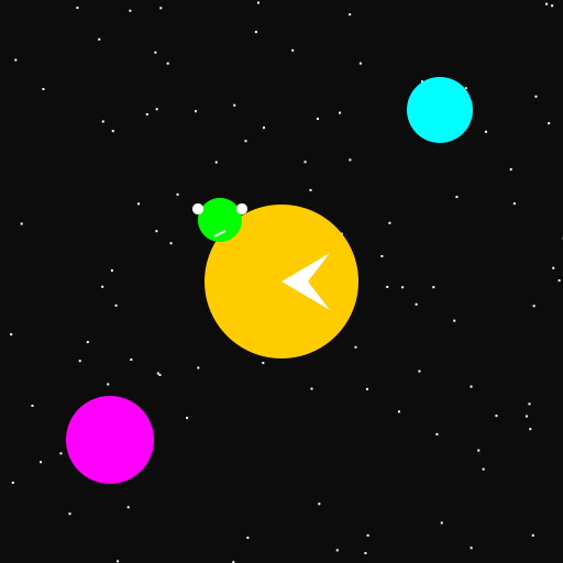 // A colorful abstract space scene with stars and planets.