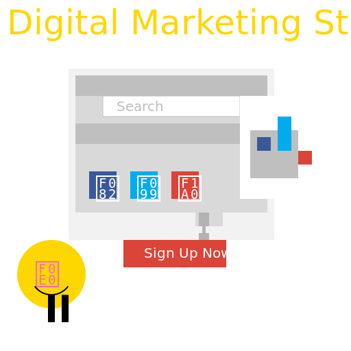 // Draw a happy digital marketing strategy