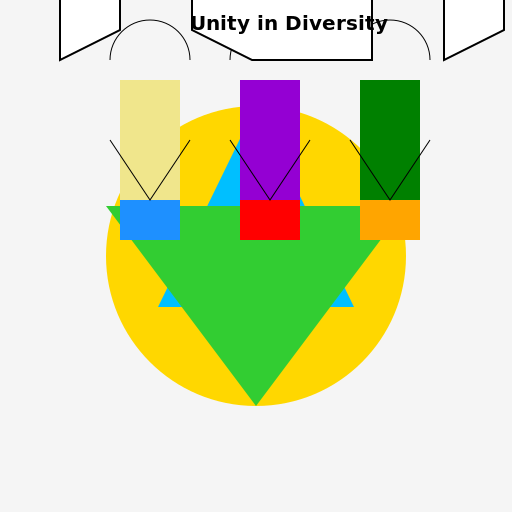 // A diverse group of individuals engage in dialogue and deliberation, with symbols of equality, justice, and collective decision-making.