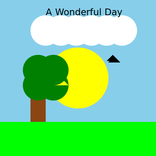 ctx.fillText('A Wonderful Day', 150, 50);