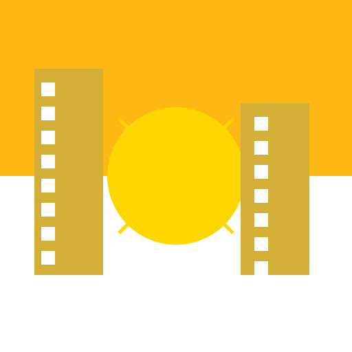 // Two Tall Buildings with Sunset in Between