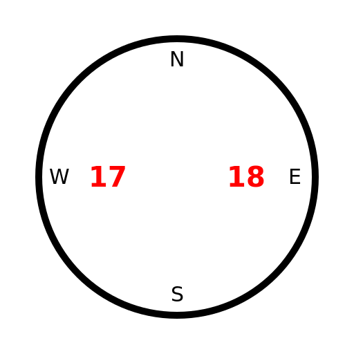 // "Compass Tattoo with Highlighted Numbers 17 and 18"
