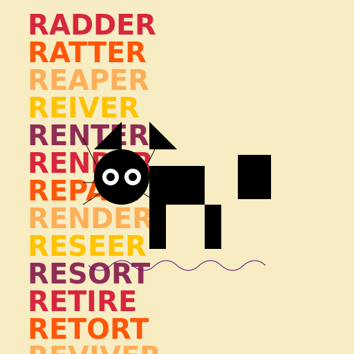 const words = ["RADDER", "RATTER", "REAPER", "REIVER", "RENTER", "RENDER", "REPAIR", "RENDER", "RESEER", "RESORT", "RETIRE", "RETORT", "REVIVER", "RIBBER", "RICHER", "RIDDER", "RIGGER", "RIMMER", "RINGAR", "RIPPER", "RISER", "ROLLER", "ROMMER", "ROOFER", "ROOMER", "ROOTER", "ROPER", "ROSTER", "ROTTER", "ROVER", "RUBBER", "RUGGER", "RUMMER", "RUSHER", "RUSTER", "RUTTER"];
