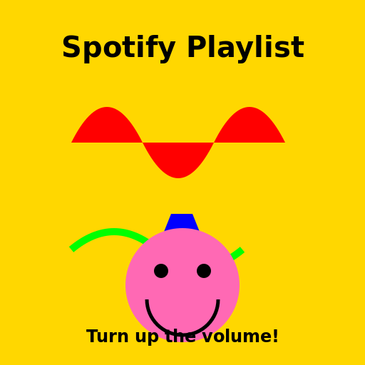 // Let's create a colorful and amusing image for a Spotify playlist!
