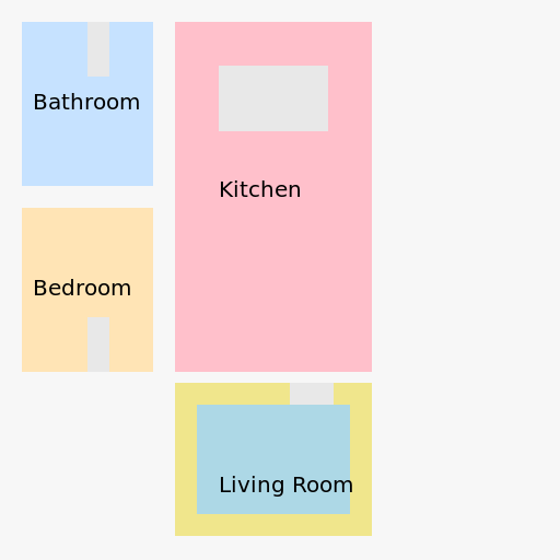 // Featuring a bathroom, bedroom, kitchen, and living room