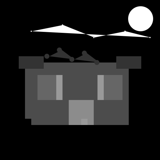 ctx.arc(450, 60, 40, 0, Math.PI * 2); // Drawing the moon