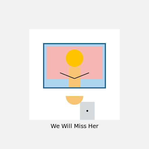 ctx.fillText("We Will Miss Her", 256, 440); // Drawing the text at the center bottom of the canvas