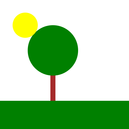 // Grass, Tree, Sun, and Clouds