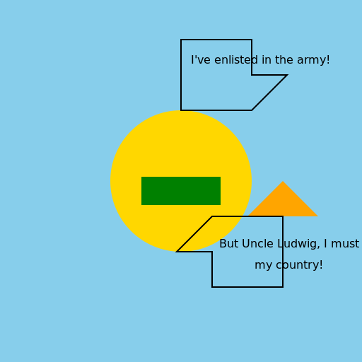 // Funny comment: Uncle Ludwig tries to recruit Karl for a marching band instead!