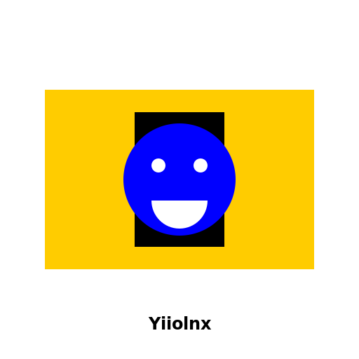 // "Yiiolnx Flag: A happy face with the text 'Yiiolnx' in a yellow and black rectangle."