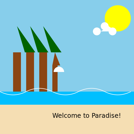 ctx.fillText('Welcome to Paradise!', 200, 450);