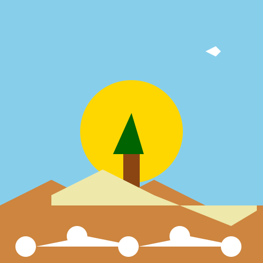 // Drawing a beautiful island with a palm tree and a shining sun.