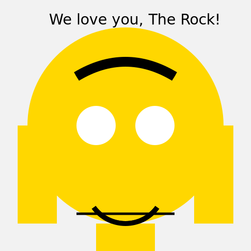 ctx.fillText("We love you, The Rock!", 100, 50); // Write a message of love