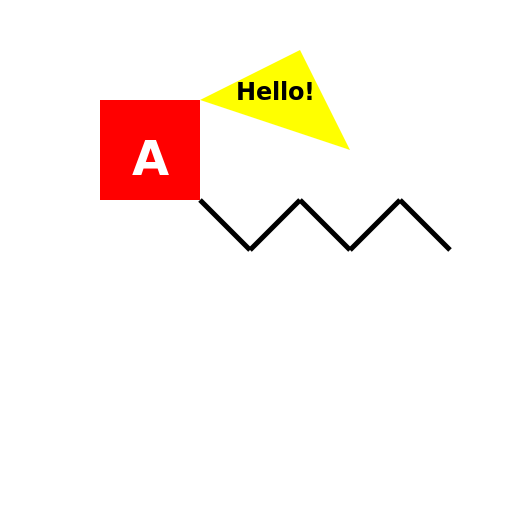 ctx.fillText('A', 150, 175); // Drawing the letter 'A' inside the rectangle