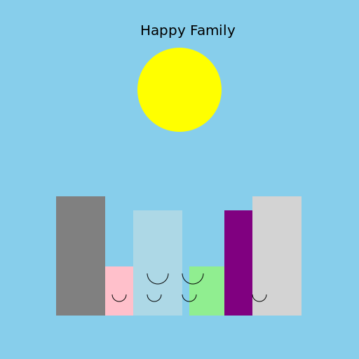// Happy Family: Father, Daughter, Son, Mom, Grandfather, and Grandmother