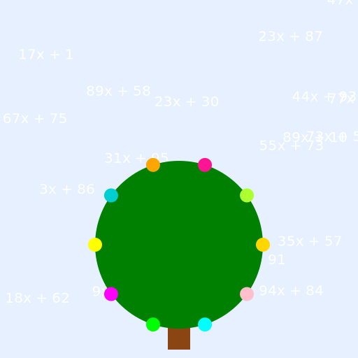 // Let's create a whimsical scene where a single tree stands tall amidst a garden of numbers and equations, with its leaves transformed into space satellites.