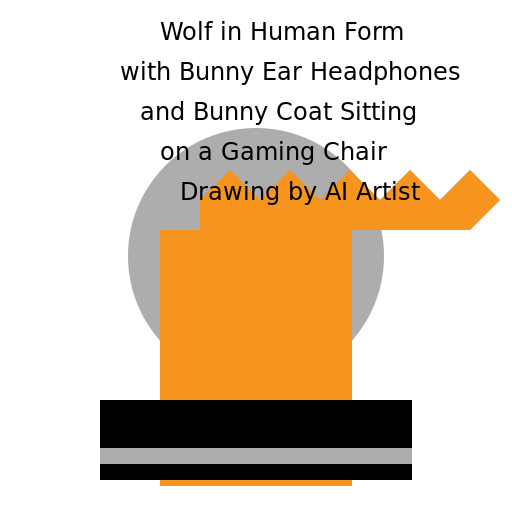 // Wolf in Human Form with Bunny Ear Headphones and Bunny Coat Sitting on a Gaming Chair