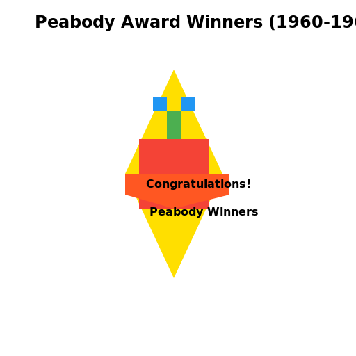 // A colorful tribute to the winners of the prestigious Peabody Awards during the 1960s.