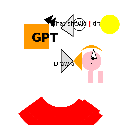 DrawGPT can draw anything you can think of and more! Just type your text prompt in to the textbox exactly like ChatGPT and see what the AI gives you! Seriously, you can get GPT to draw just about anything for you that you can type in the box.