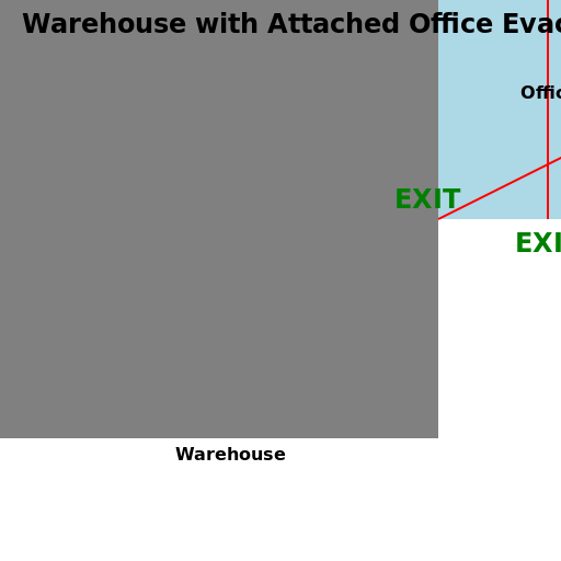 ctx.fillText('Warehouse with Attached Office Evacuation Floor Plan', 20, 30);