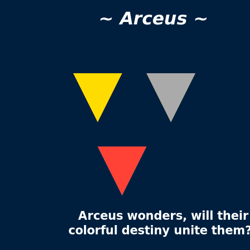 // Arceus, the mighty deity, contemplates the Creation Trio's color swap