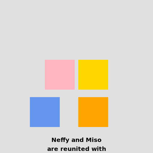 // Draw Neffy and Miso reunited with Devon and Mario