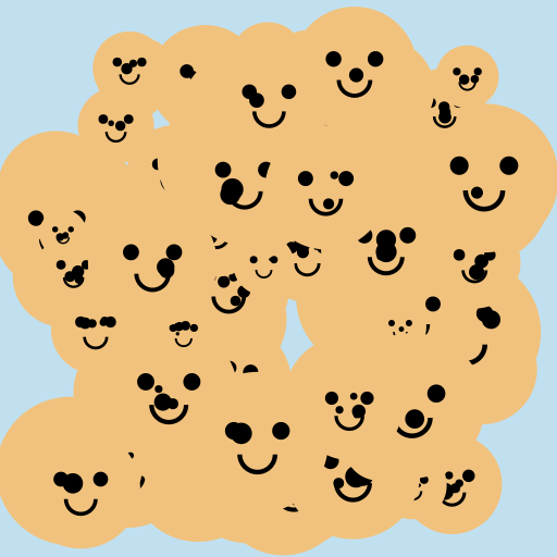 // Now we'll draw 100 cute faces of dogs