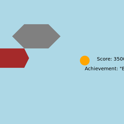 // Drawing a shark with a trail of 7 dogs crushed and a player with 3500 points and an achievement saying "B2"