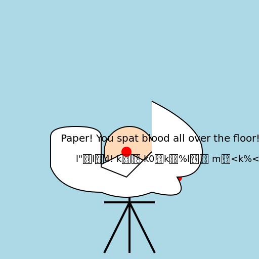 ctx.fillText('Paper! You spat blood all over the floor!', 120, 280);