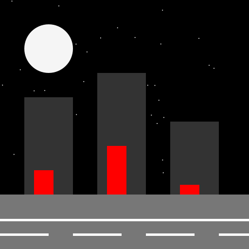 ctx.fillRect(350, 250, 100, 150); // Building 3