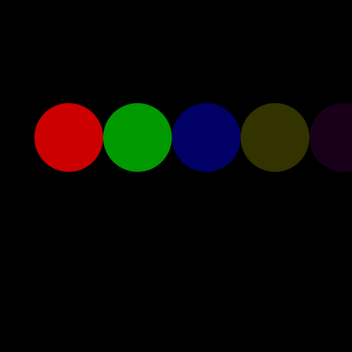 // Drawing 5 eyes glowing in the dark with different intensity and color