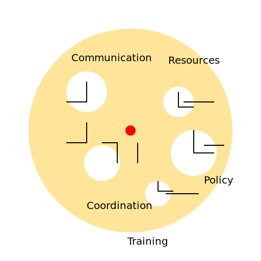 // This drawing will represent the challenges faced in interagency exchange in wildfire management using a swiss cheese model.