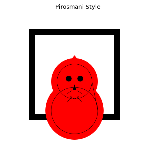 // Red Fluffy Cat Sitting at Window in Pirosmani Style