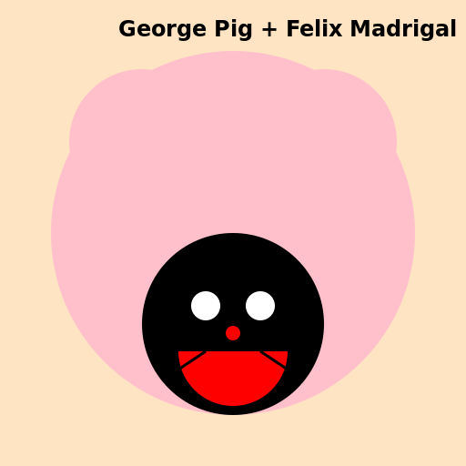// "When George Pig and Felix Madrigal fuse, they become the ultimate cuteness overload! Just look at those chubby cheeks and adorable whiskers! Who wouldn't want to be friends with this lovable creature?"