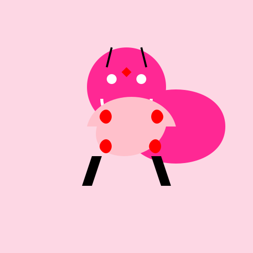 // Creating a heart-shaped bug with love wings and a cute smiley face