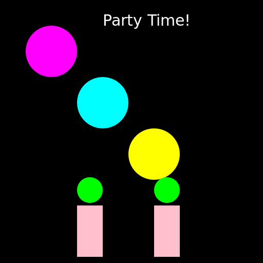 ctx.fillText("Party Time!", 200, 50); // Adding text to the canvas