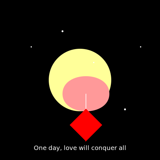 ctx.fillText("One day, love will conquer all", 256, 480);