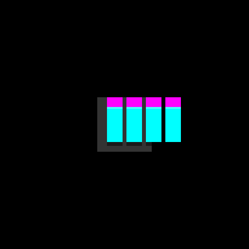 // Let's draw a 3D black light fixture with 4 neon tubes!
