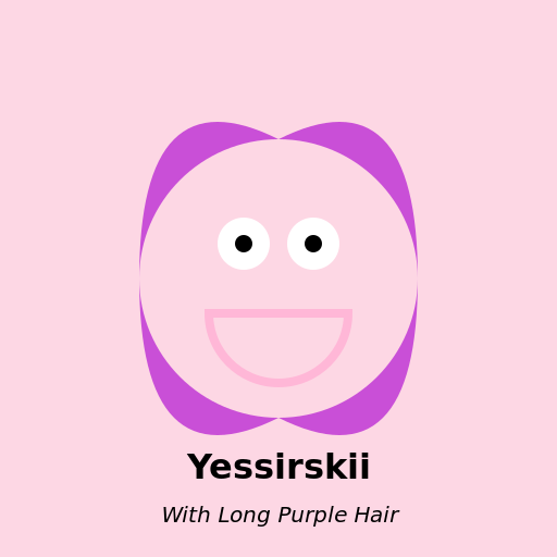 // Let's create a vibrant album picture with long purple hair!