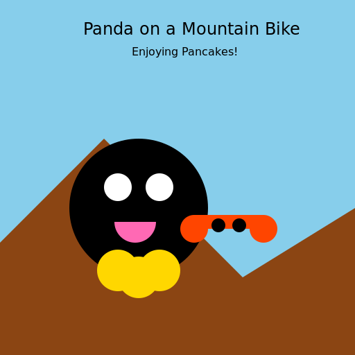 // Cute Panda on a Mountain Bike Eating Pancakes