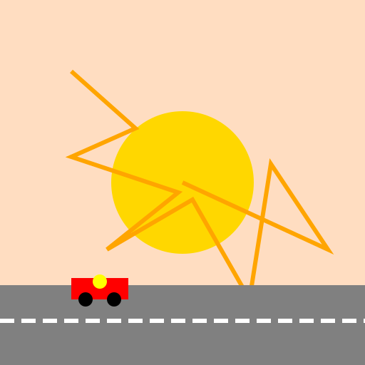 // Let's create a serene scene with a road leading towards a beautiful sunset instead!