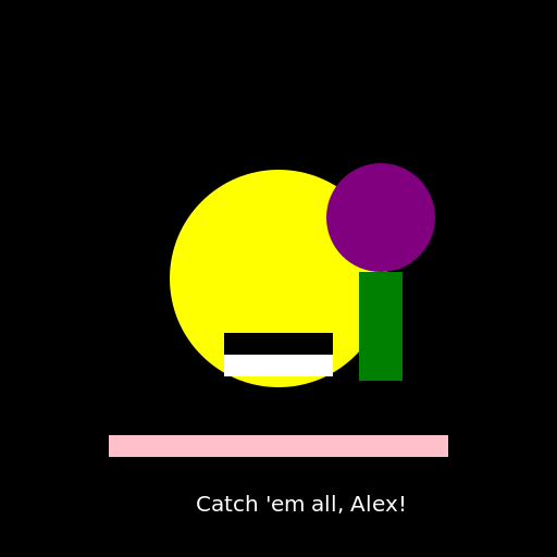 ctx.fillText("Catch 'em all, Alex!", 180, 470); // Adding a text