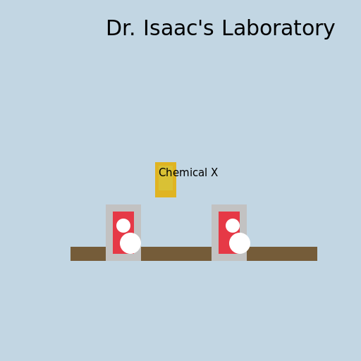 // Dr. Isaac is brewing up some colorful concoctions in his lab! Let's hope he doesn't accidentally turn himself into a rainbow!