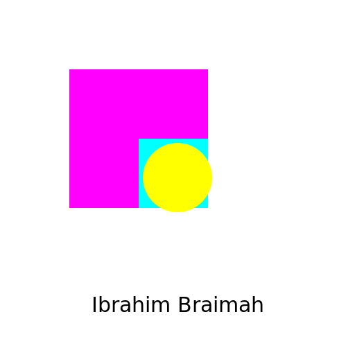 // "Ibrahim Braimah" - A vibrant abstract artwork that showcases colorful shapes and a bold name.