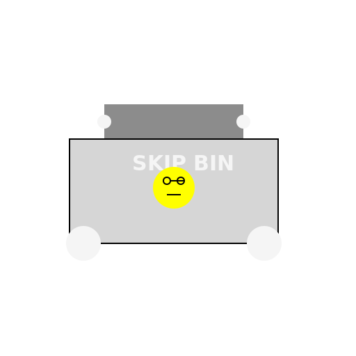 ctx.fillText('SKIP BIN', 190, 245); // Writing "SKIP BIN" on the side of the bin
