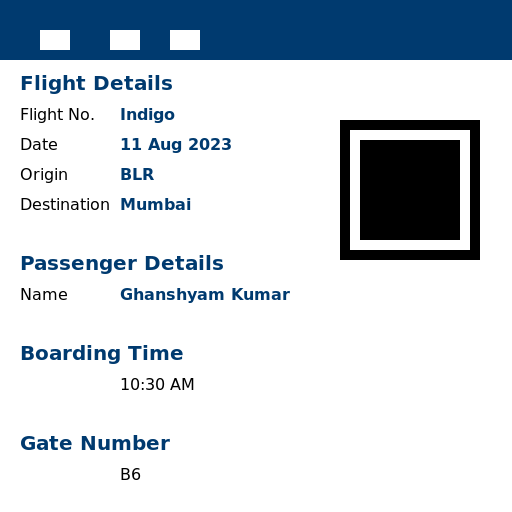 // Boarding Pass: BLR to Mumbai on 11 Aug 2023 for Indigo Flight