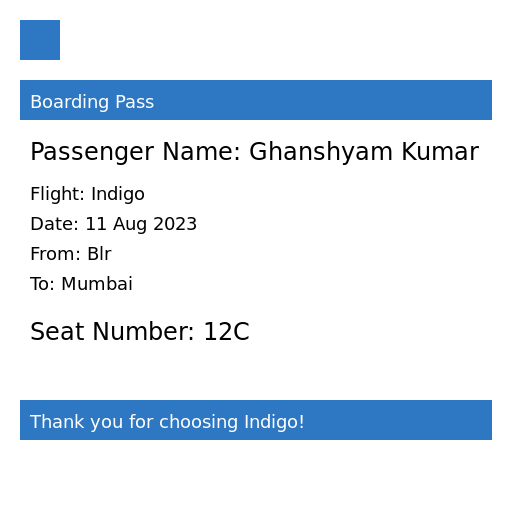 // Drawing: Indigo Boarding Pass for Blr to Mumbai on 11 Aug 2023