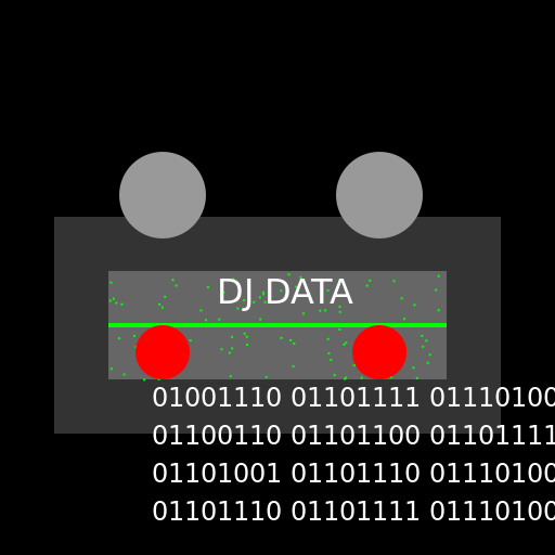 // Let's create a fun and funky scene of a DJ playing music with data flowing out!