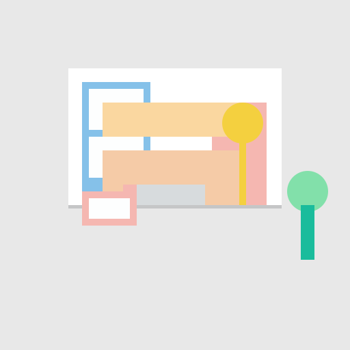 // I drew a cozy studio apartment with a bed, sofa, table, chair, TV, window, door, lamp, plant, and a nice wooden floor!