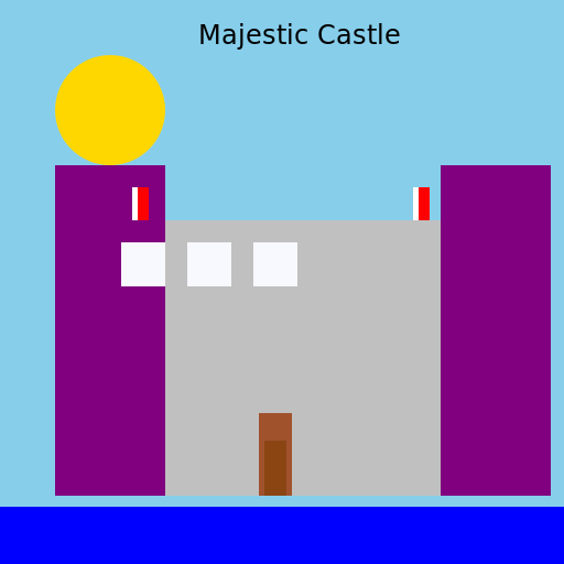 ctx.fillText('Majestic Castle', 180, 40); // Title
